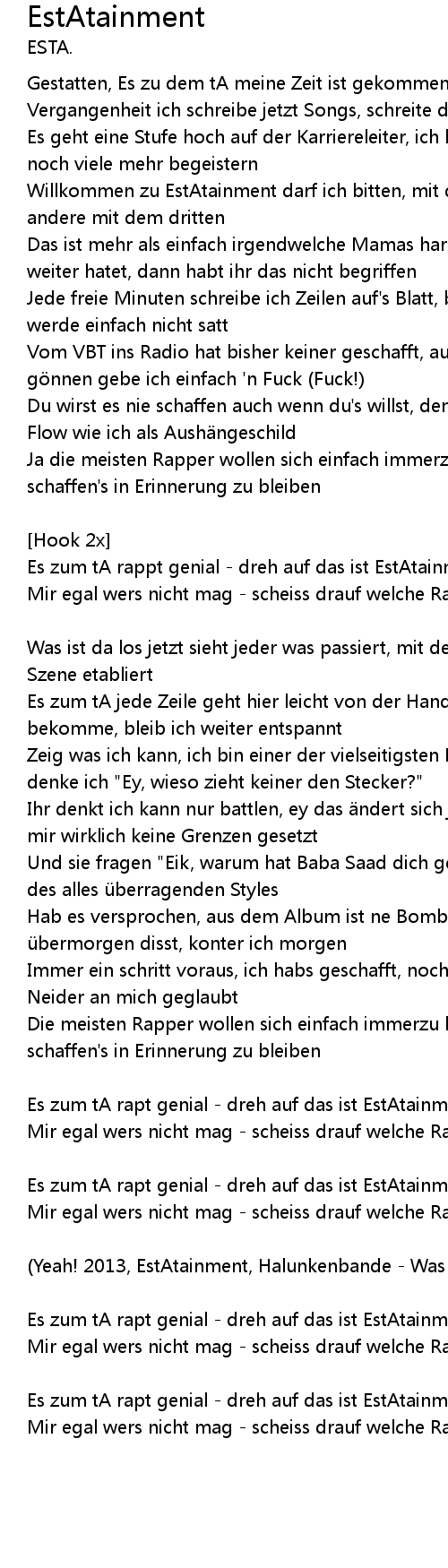 | Es zum tA rapt genial - dreh auf das ist EstAtainment | |