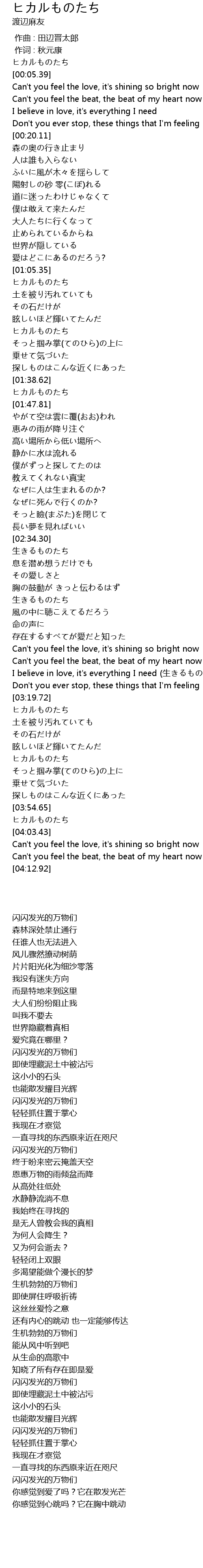 | [03:12.28] | I believe in love, it's everything I need (生きるものたち) |