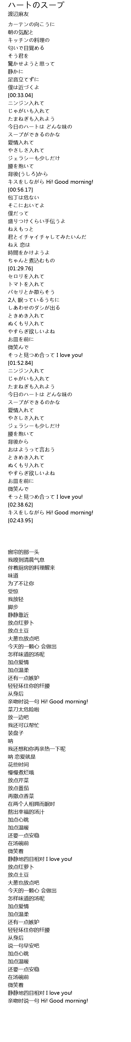 | [00:52.76] | キスをしながら Hi! Good morning! |