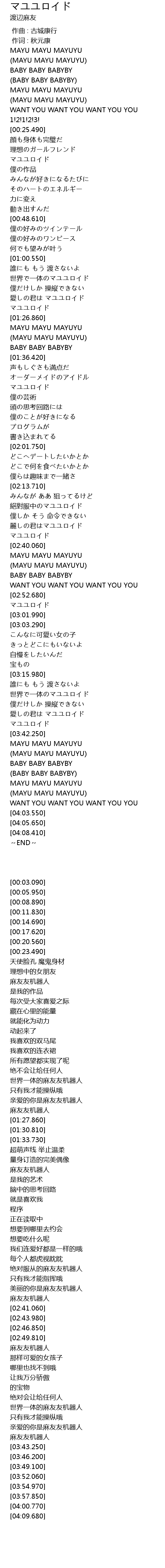 | [03:34.460] | 愛しの君は マユユロイド |