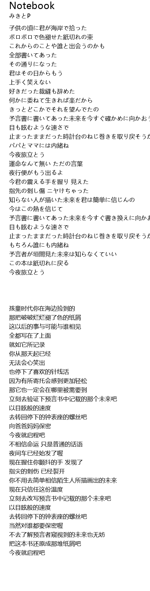 | [01:34.78] | 予言書に書いてあった未来を今すぐ確かめに向かおうか |