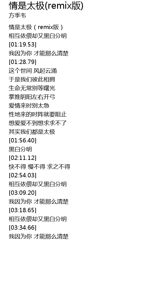 | [00:05.15] | qíng shì tài jí remix bǎn |