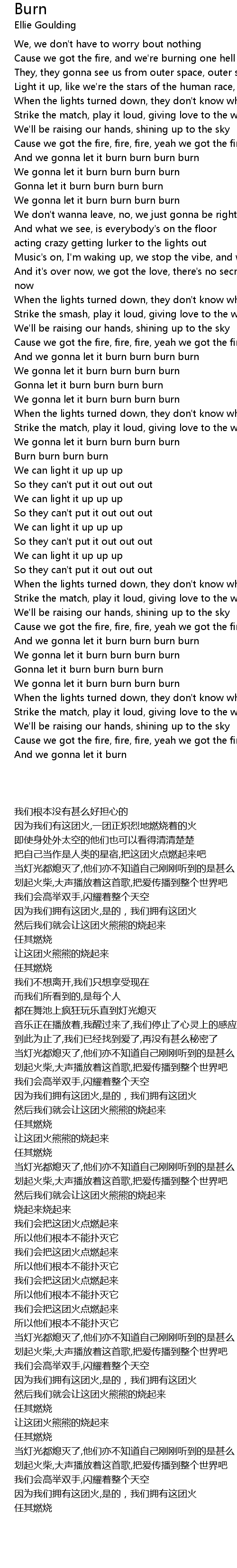 And we gonna let it burn burn burn burn |