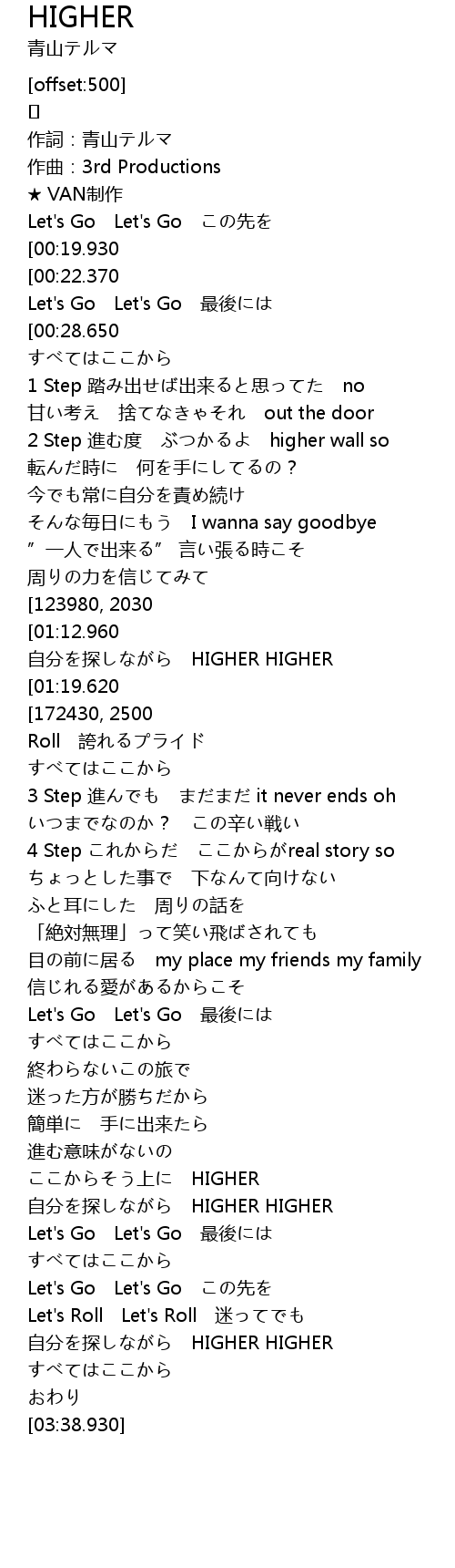 | [03:03.790] | 自分を探しながら HIGHER HIGHER |
