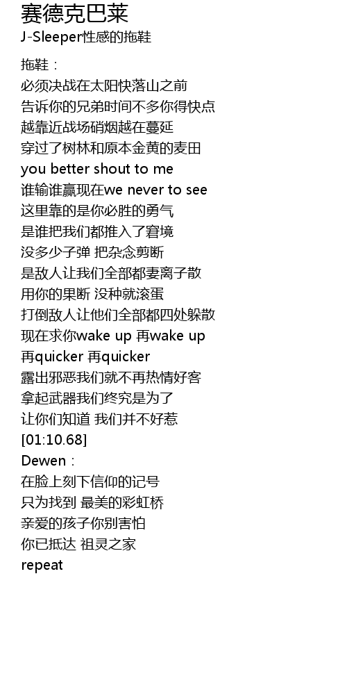 | [00:58.25] | 打倒敌人让他们全部都四处躲散 |
