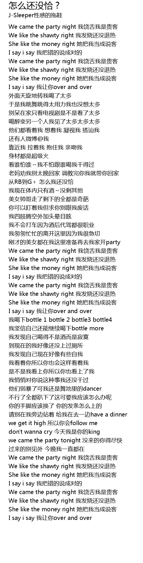| [02:45.73] | we came the party tonight méi lái de nǐ dé jǐn kuài |