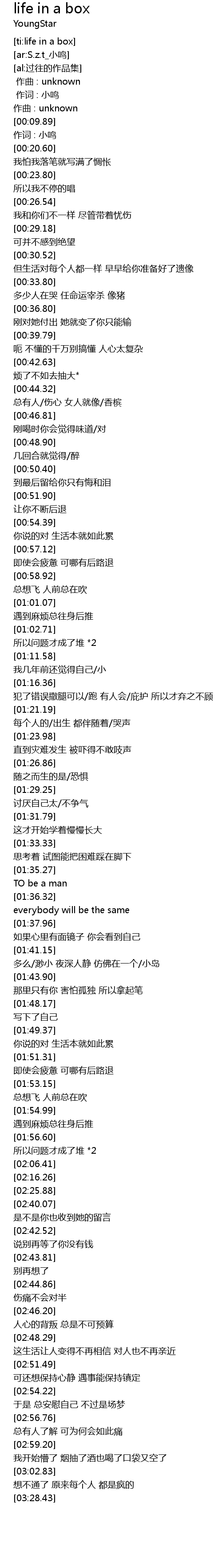 | [01:21.74] | 每个人的/出生 都伴随着/哭声 |