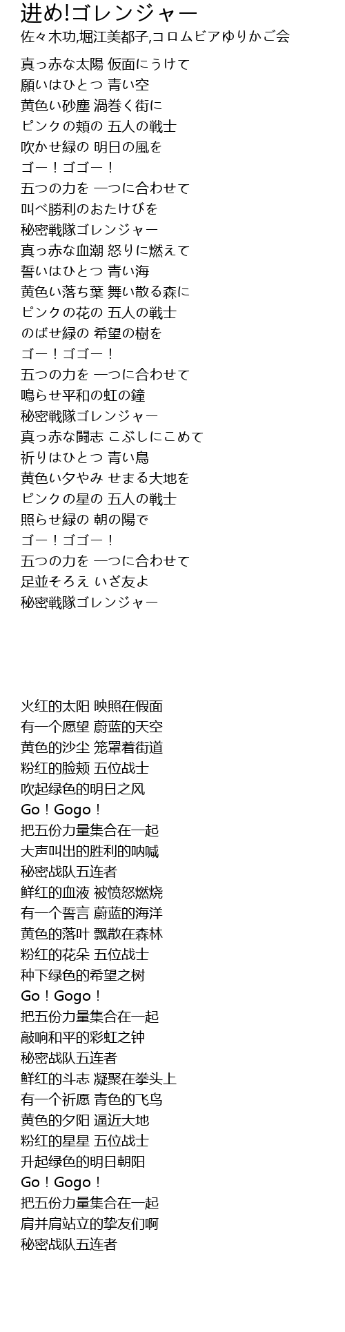 | [01:53.99] | 秘密戦隊ゴレンジャー |