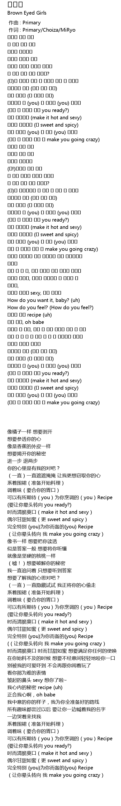 | [00:01.00] | 作词 : Primary/Choiza/MiRyo |