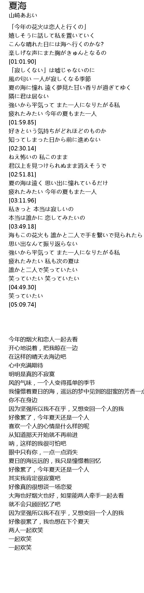 | [01:50.87] | 疲れたみたい 今年の夏もまた一人 |