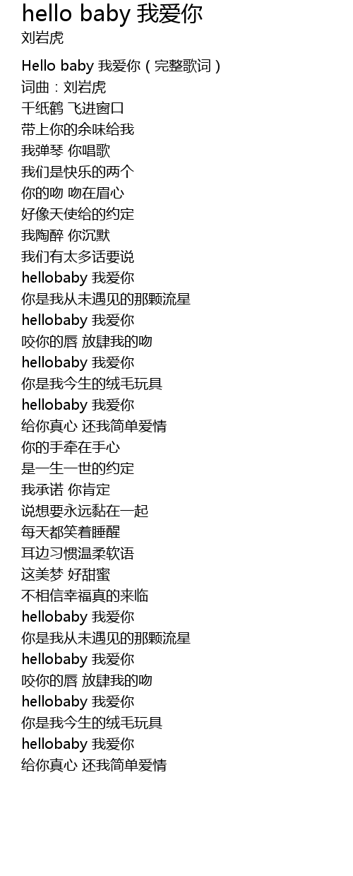 | Hello baby wǒ ài nǐ wán zhěng gē cí | |