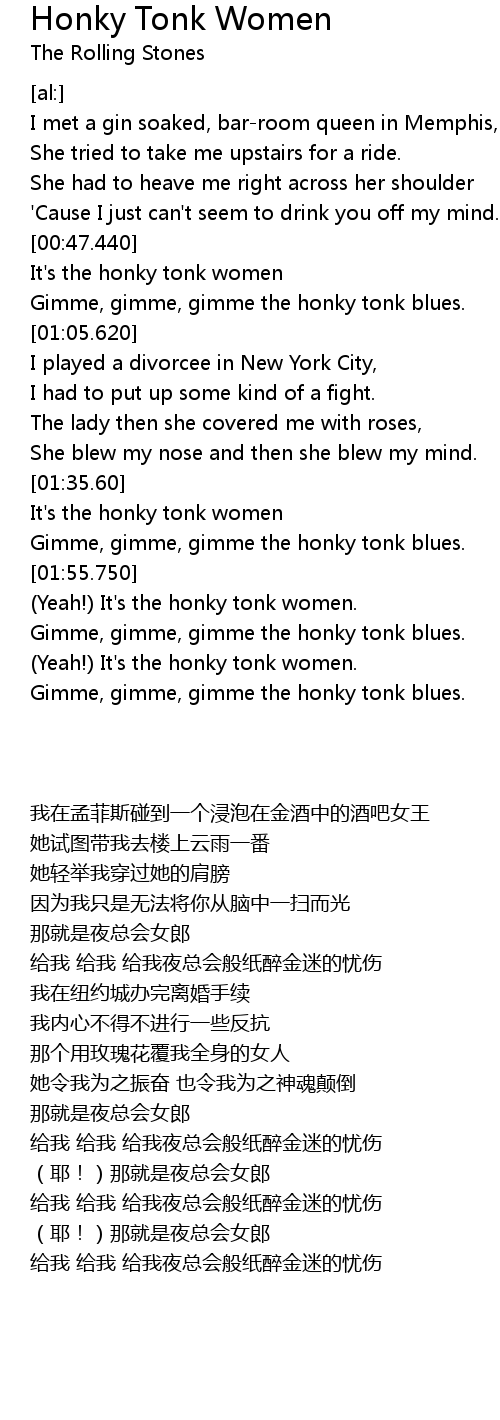It's the honky tonk women |