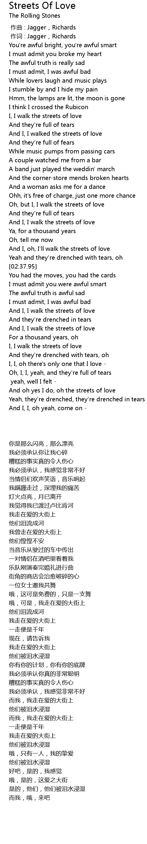 | [04:39.06] | And oh yes I do, oh the streets of love |