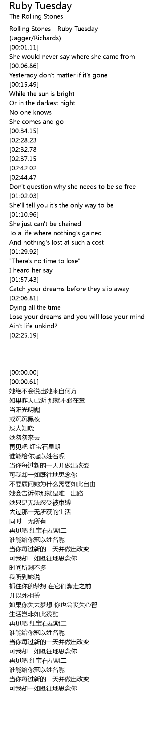 [00:00.00] Rolling Stones - Ruby Tuesday