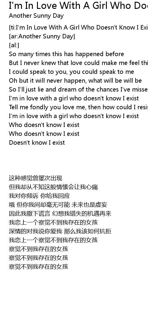 [ti:I'm In Love With A Girl Who Doesn't Know I Exist] |