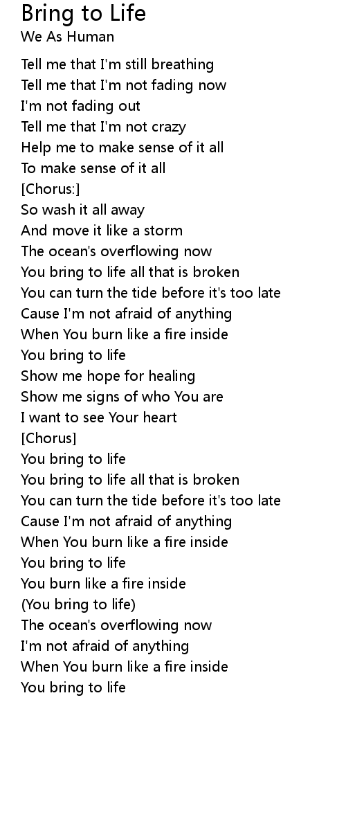 You bring to life |