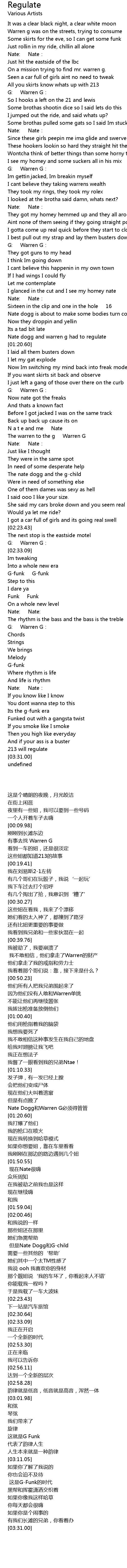 | [01:17.75] | Nate dogg and warren g had to regulate |