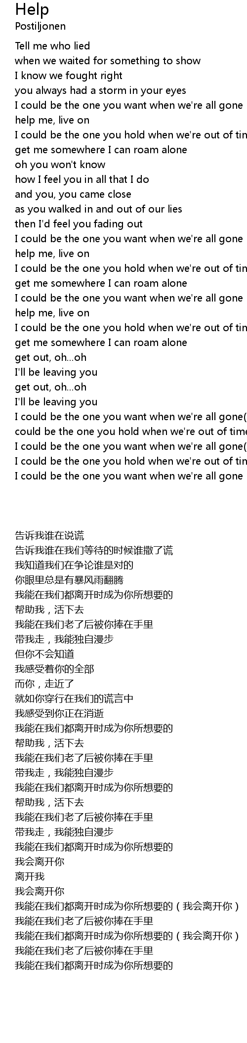 I could be the one you want when we're all gone(I'll be leaving you) |