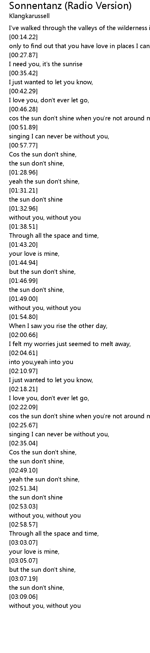 [02:22.85] cos the sun don't shine when you're not around mine,