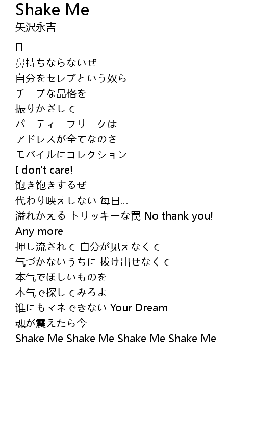 | Shake Me Shake Me Shake Me Shake Me |