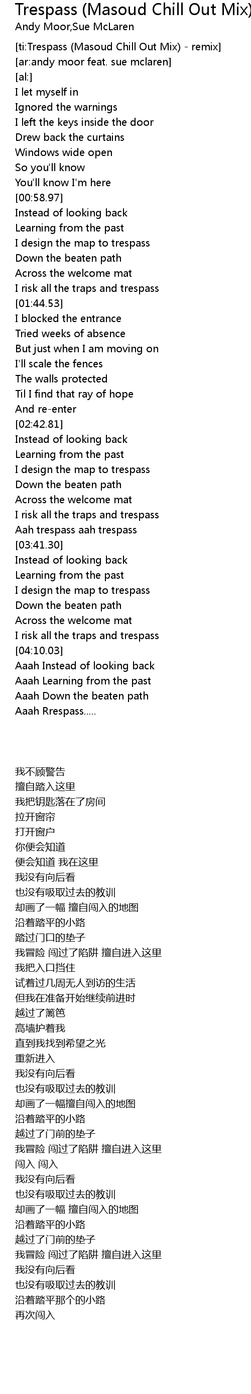 [ti:Trespass (Masoud Chill Out Mix) - remix] |
