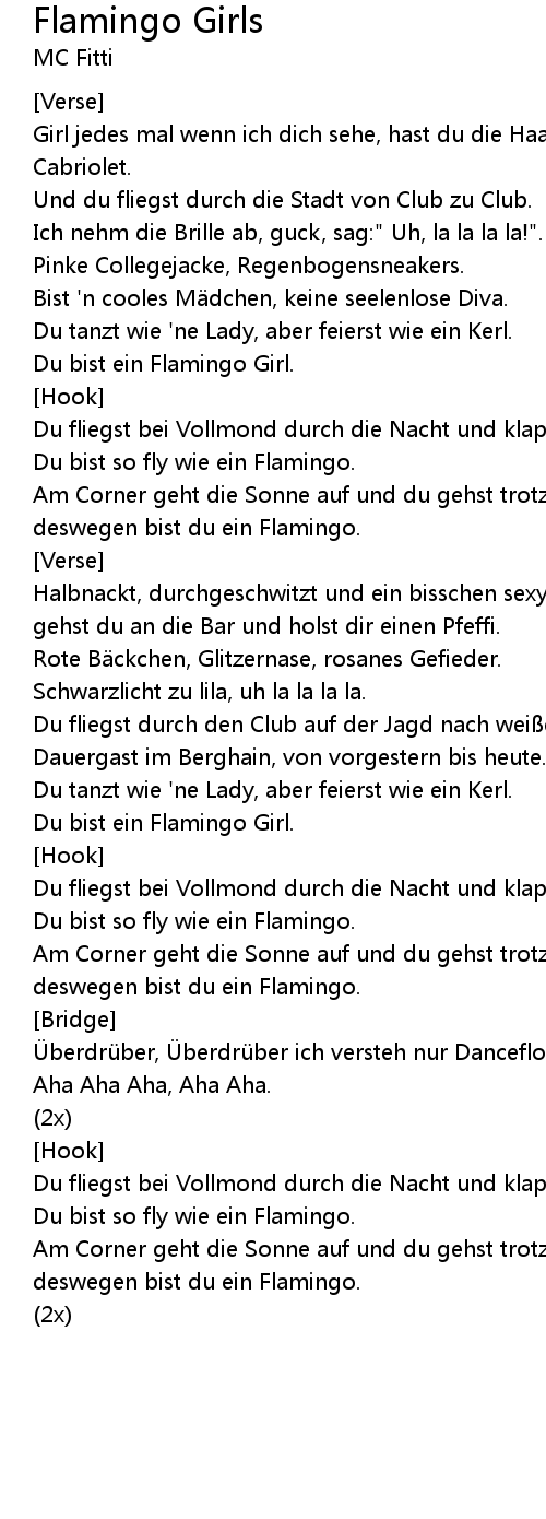 | Du bist so fly wie ein Flamingo. | |