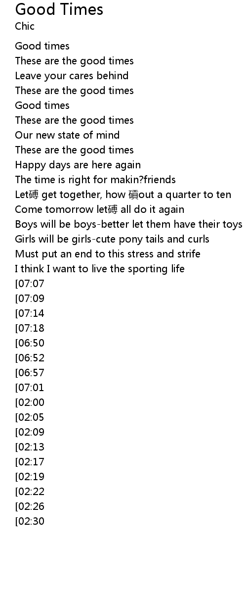 | [07:41][07:07][06:33][03:08][02:34][01:25] | Good times |