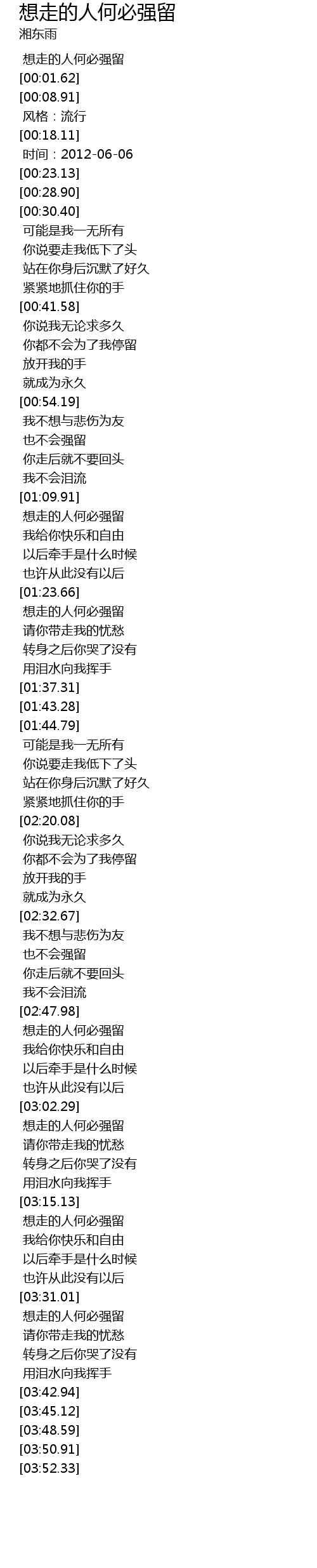 | [03:33.23] | xiǎng zǒu de rén hé bì qiǎng liú |