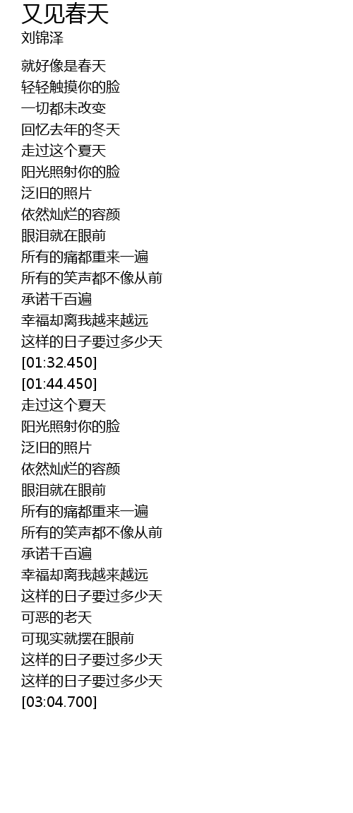 | [00:25.450] | jiù hǎo xiàng shì chūn tiān |