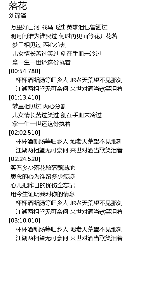 | [00:29.160] | ming yue wen shui wei shui ku guo he shi zai jian mian deng hua kai hua luo |