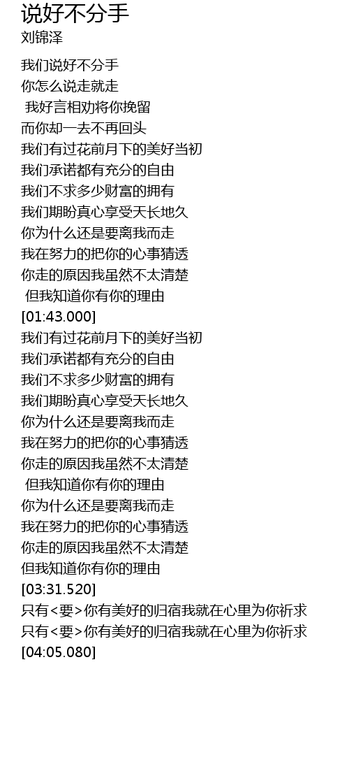 | [03:39.340] | 只有<要>你有美好的归宿我就在心里为你祈求 |