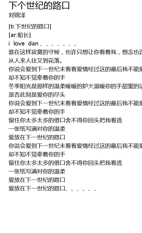 | [03:17.403] | 爱放在下一世纪的路口、、、、、、 |