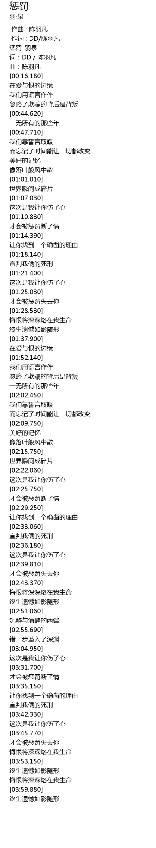 | [00:01.00] | 作词 : DD/陈羽凡 |