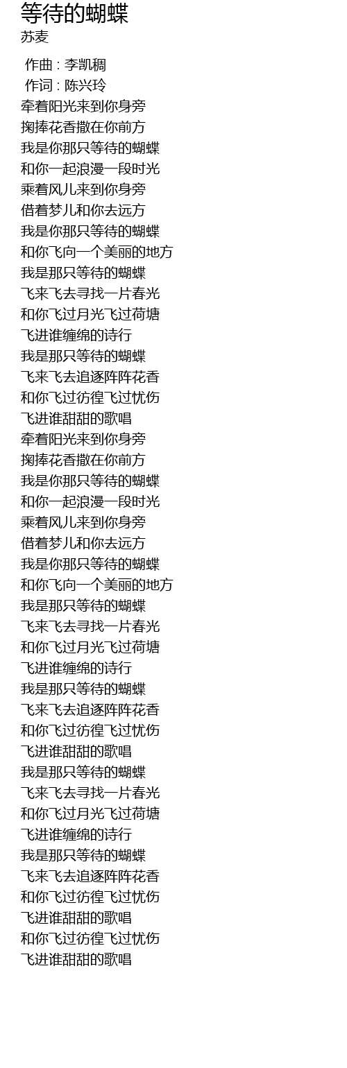 | [01:52.654] | 我是那只等待的蝴蝶 |