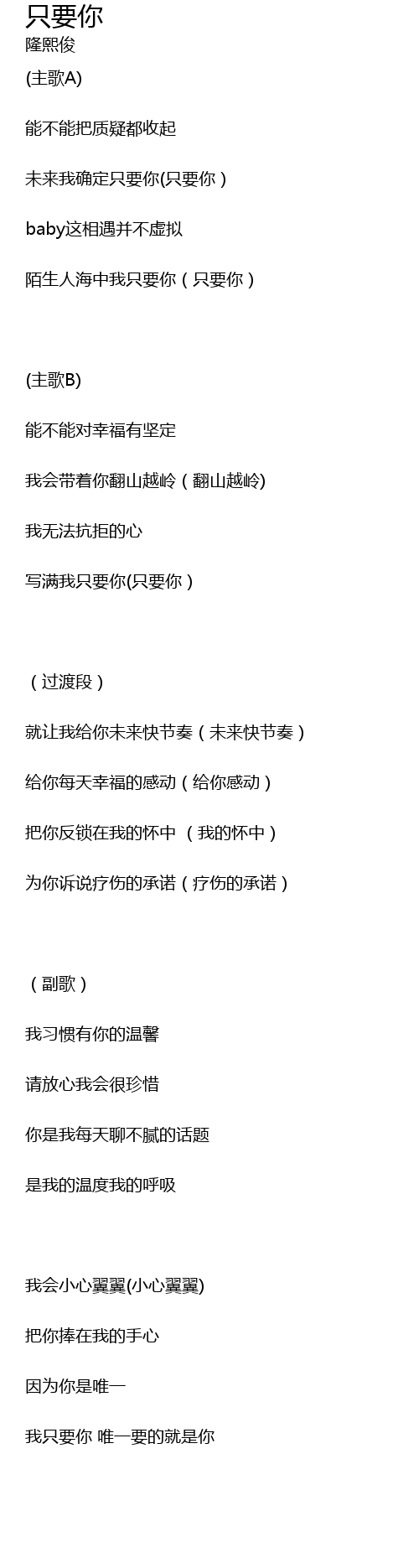 | 写满我只要你(只要你) | |