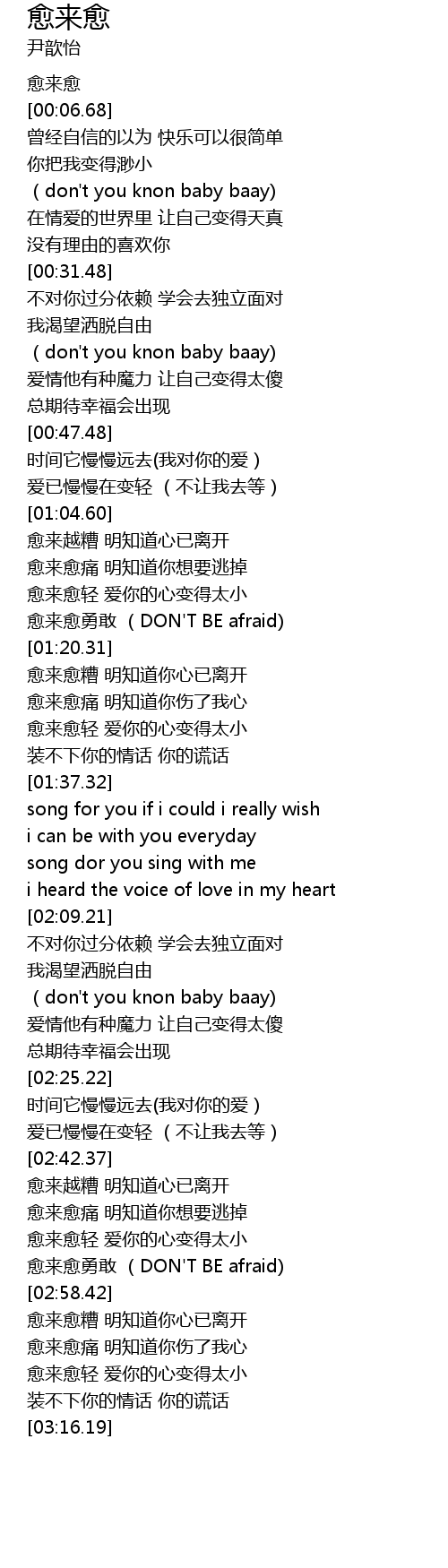 | [02:54.72] | 愈来愈勇敢 (DON'T BE afraid) |