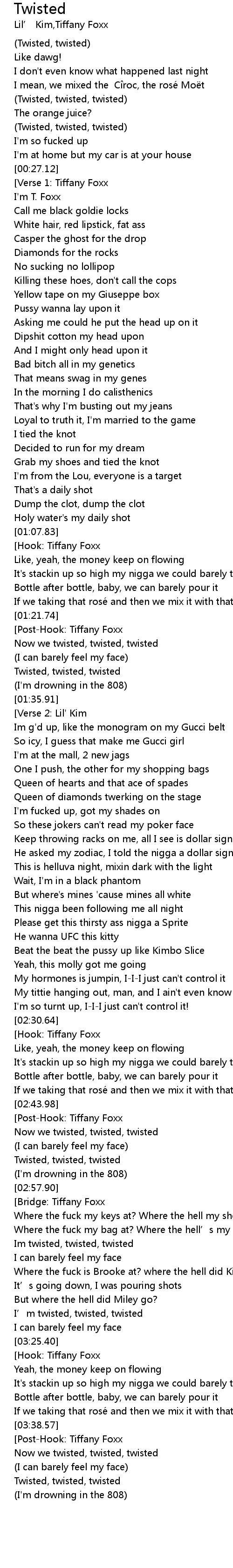 | [01:29.48] | Twisted, twisted, twisted |