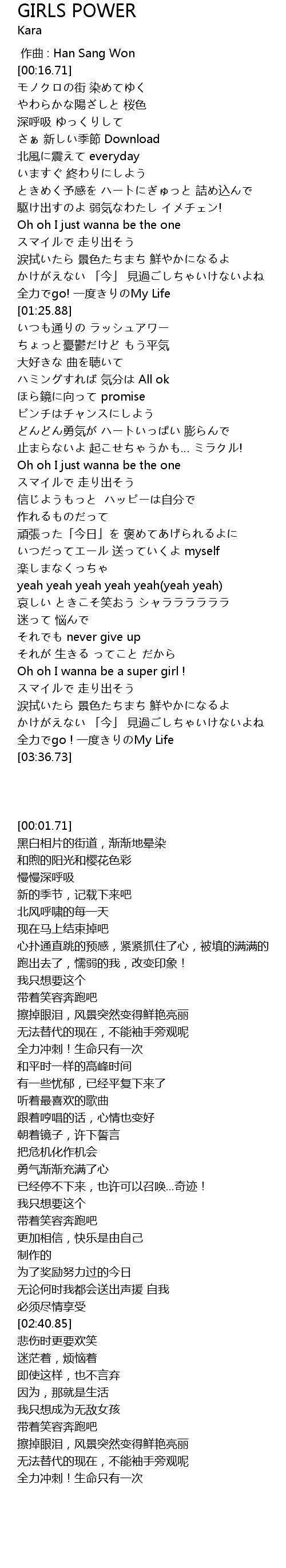 | [03:06.00] | Oh oh I wanna be a super girl ! |