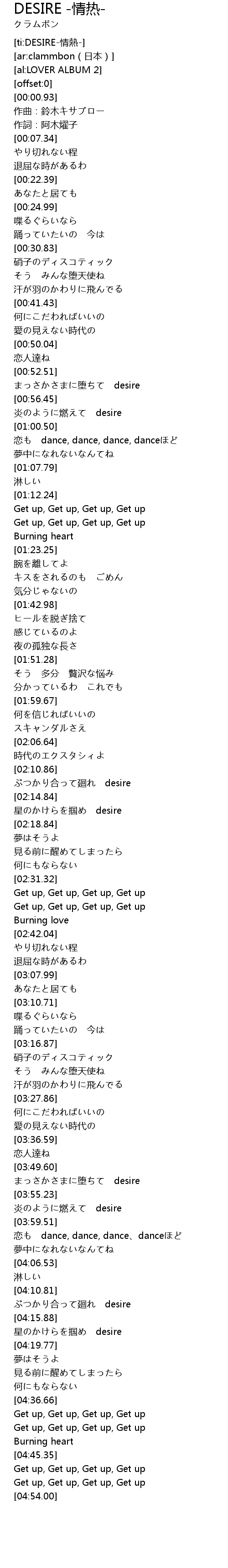 | [00:53.04] | まっさかさまに堕ちて desire |
