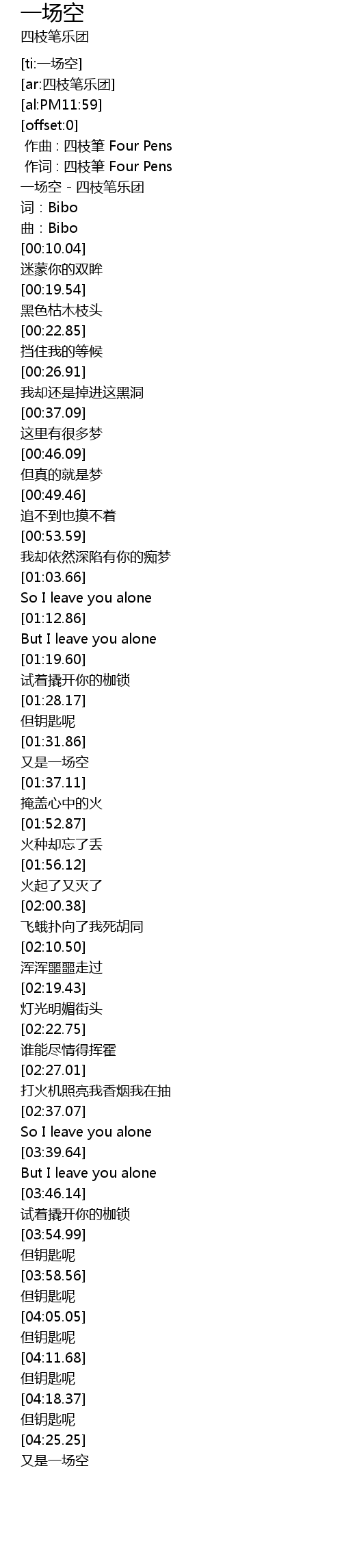 | [00:03.54] | 一场空 - 四枝笔乐团 |