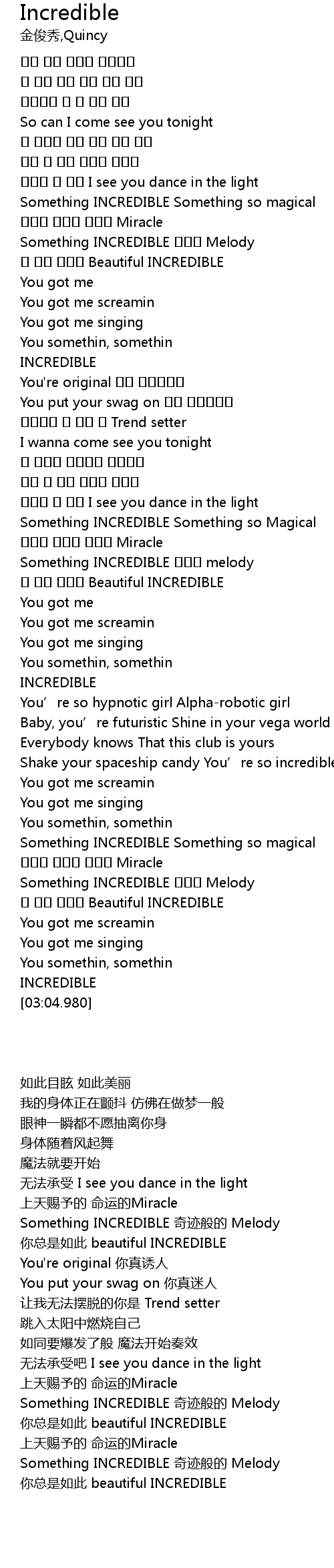 | [02:33.610] | Something INCREDIBLE Something so magical |