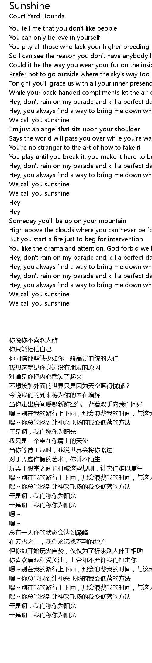 Hey, don't rain on my parade and kill a perfect day, wasting my time |