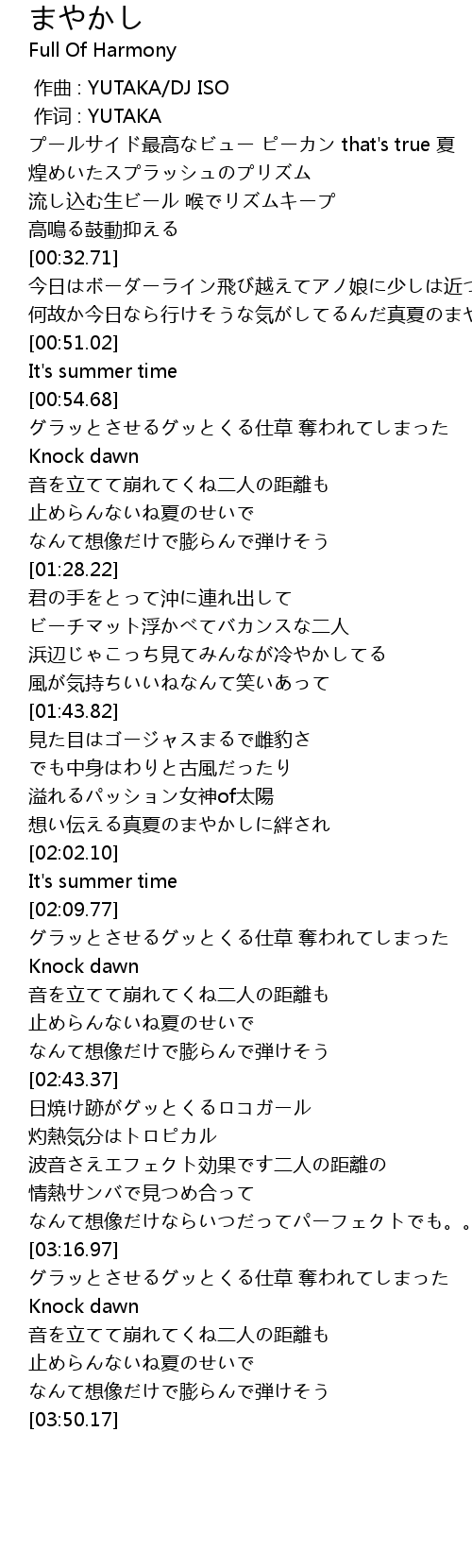 | [00:00.00] | 作曲 : YUTAKA/DJ ISO |