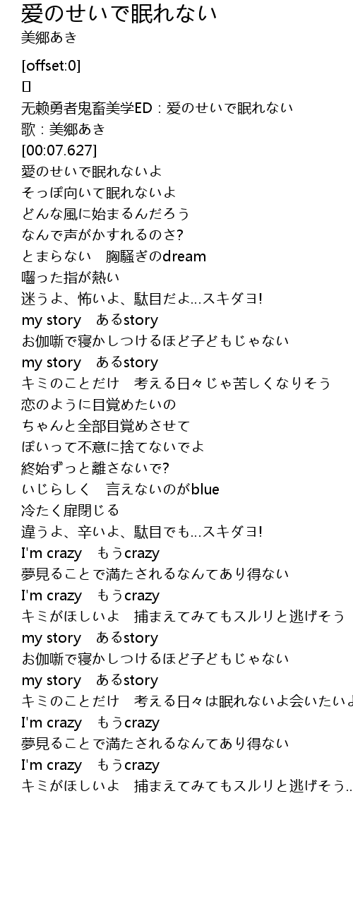 | [00:26.427] | 愛のせいで眠れないよ |
