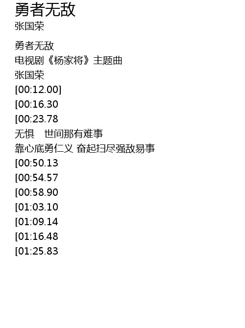 | [00:40.88] | 靠心底勇仁义 奋起扫尽强敌易事 |