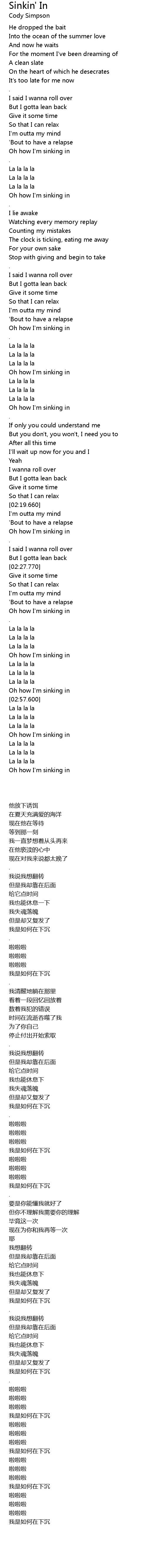 Oh how I'm sinking in |