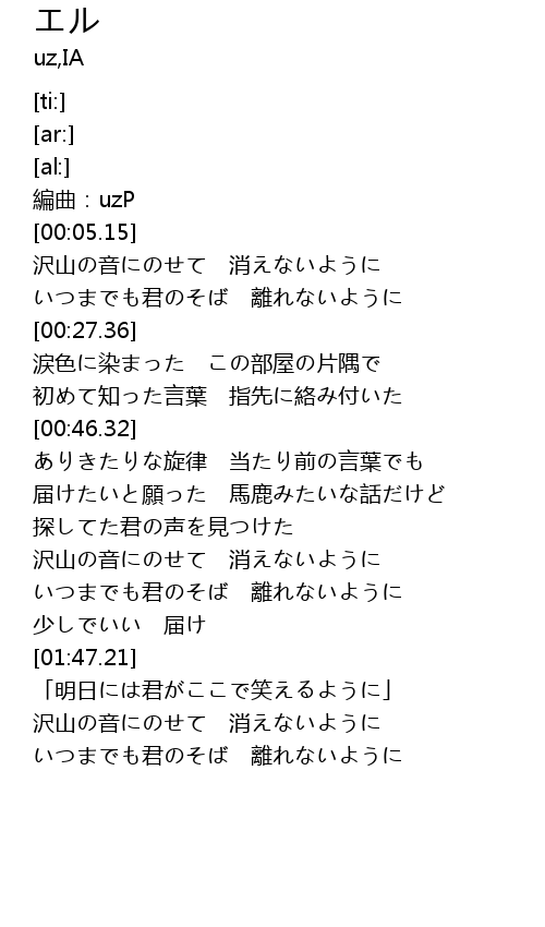 | [00:46.80] | ありきたりな旋律 当たり前の言葉でも |