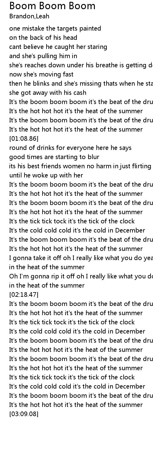 | [03:00.41] | It's the boom boom boom it's the beat of the drum |