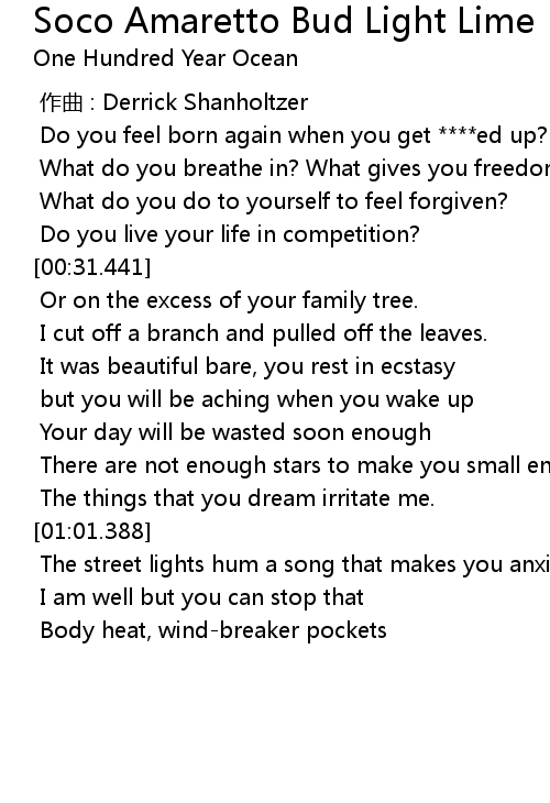 | [00:15.673] | Do you feel born again when you get ****ed up? |