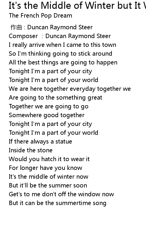 | Song | It's the Middle of Winter but It Will Be the Summer Soon |